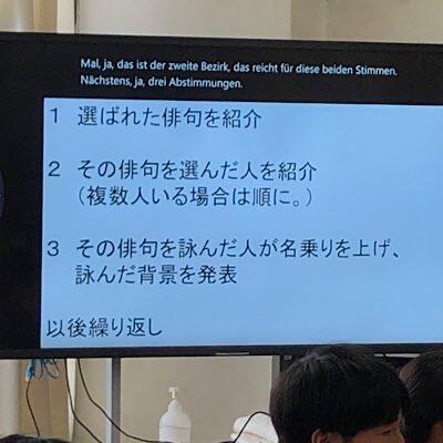 各クラスのバスをオンラインでつないで、解散式を行なっています