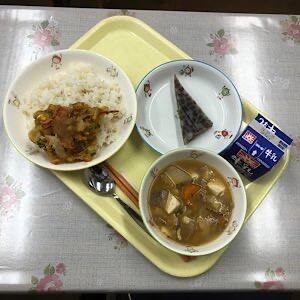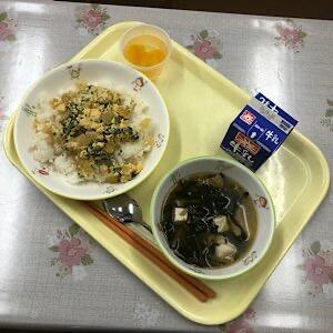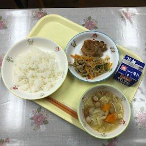 鶏の唐揚げ ツナ和え 味噌けんちん汁 ごはん 牛乳