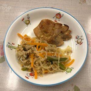 明日オープンスクール給食は、鶏の唐揚げ他です