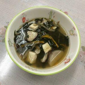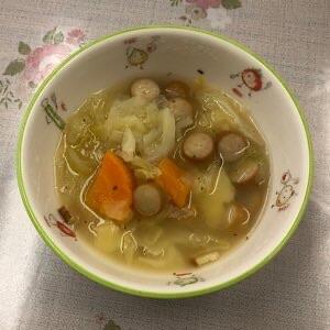 6種の野菜と鶏肉、とうふ、油揚げ、こんにゃくが入った汁もの