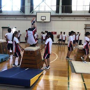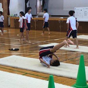 マット運動、跳び箱運動で回転して身体をコントロールする感覚を養っています