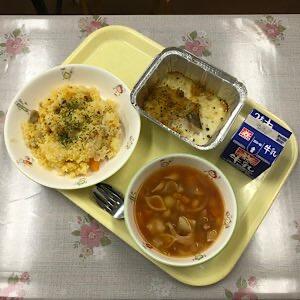 キャロットピラフ 白身魚のパン粉焼き ミネストローネ 牛乳