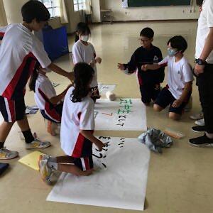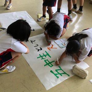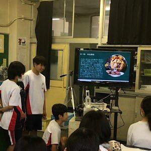 チーム五中みんなの笑顔を増やしましょう学習、整理したことをプレゼンしています