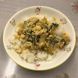 親子丼 沢煮椀 みかんゼリー 牛乳