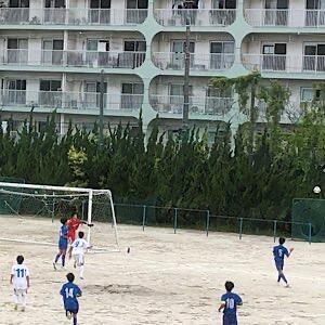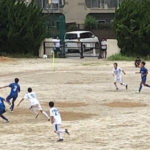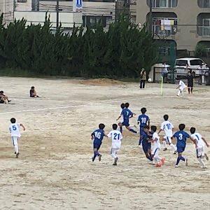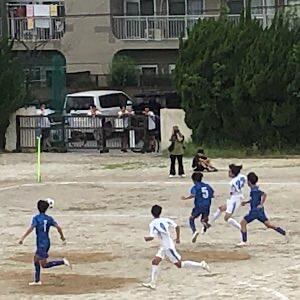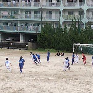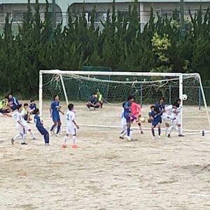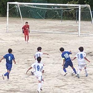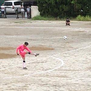 五中キーパーが反応してセーブするが、ボールがゴールに転がり失点