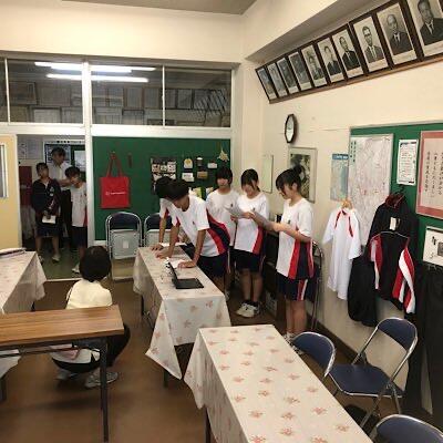 五中ユニフォームは、紺と白(三学年)水色と白(二学年)