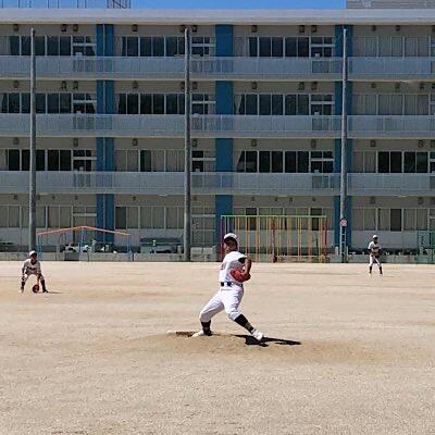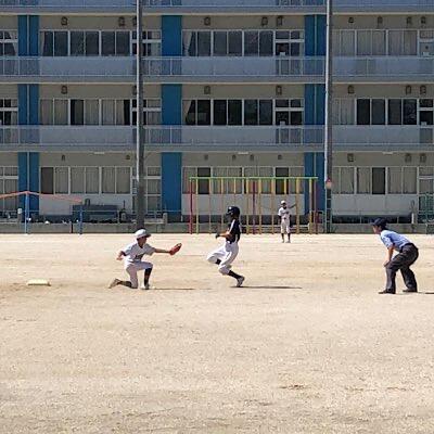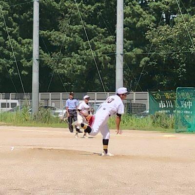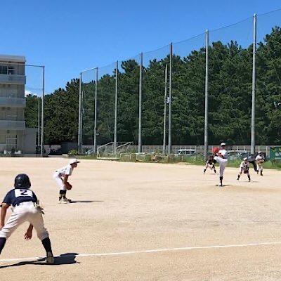 一回表 後攻めの五中のピッチャーNo.10は四球とヒットを許して2点を失う
