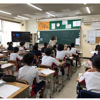 クラスでは、あいさつや、日常会話を調べて話しかける様子が見られます