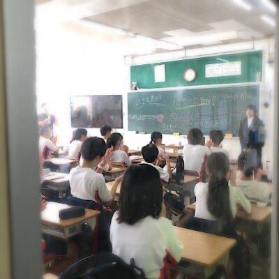 一学年教室で、海外から来た転入生の歓迎セレモニーをしています