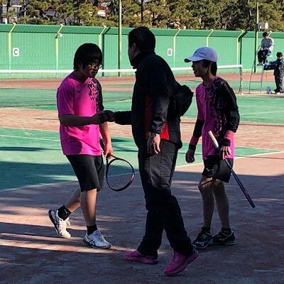 中盤、サーブ、ストロークが安定し、勝負どころを気迫溢れるショットを決めて八中ペアを撃破