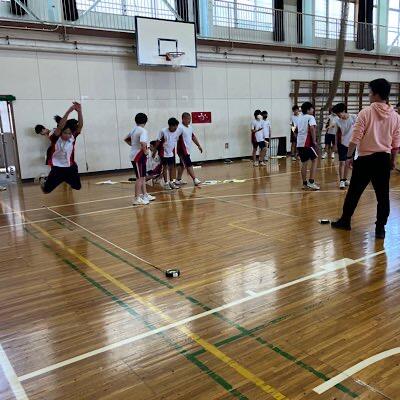 体育委員会が競技運営の練習を終え、ラインを直したところです
