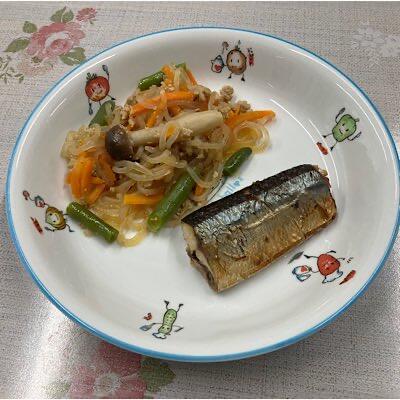 さんまの塩焼き しらたきソテー ごはん みそ汁 牛乳