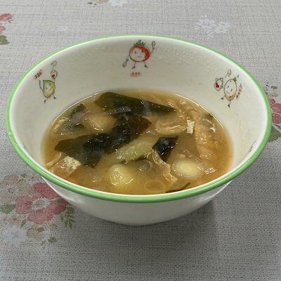 ジャガイモ、ネギ、わかめ、油揚げのお味噌汁
