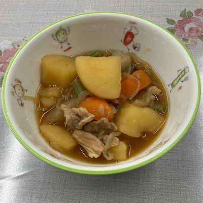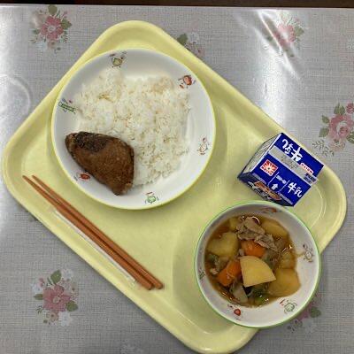 かつおの竜田揚げ ごはん 肉じゃが 牛乳