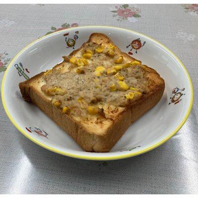 ツナマヨとコーンの美味しいペアが、厚切りトーストの上で華やかに踊ります