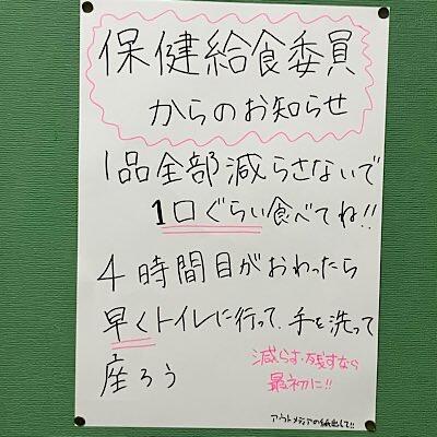 「給食おかわりじゃんけんに勝利!連敗3で止まりました。明日は、連覇を目指すぞ!」(ぽん太:五中生徒)