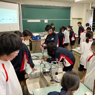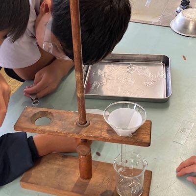 オオカナダモの検体試験管に実験溶液を加えて観察