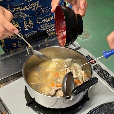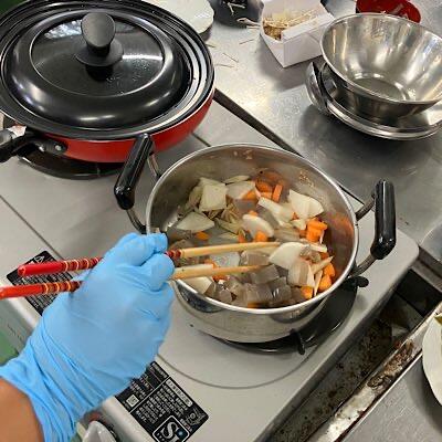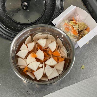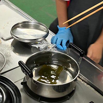昆布とかつお節で出汁をとり(昆布&かつお節は、後ほどふりかけに再生)