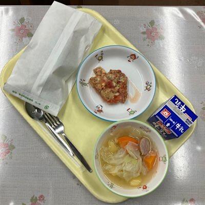 抹茶揚げパン ミラノ風チキン ポトフ 牛乳