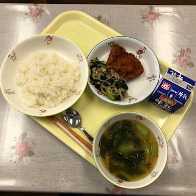 ヤンニョムチキン ナムル わかめスープ ごはん 牛乳