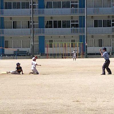 一回表 後攻めの五中のピッチャーNo.10は四球とヒットを許して2点を失う