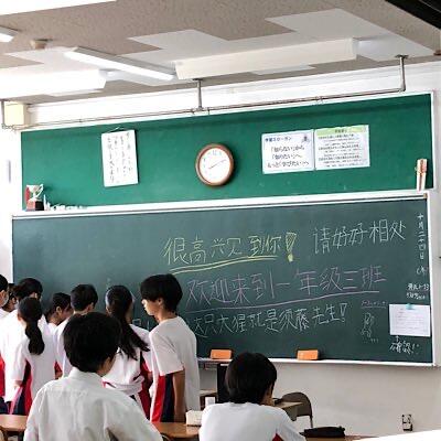 一学年教室で、海外から来た転入生の歓迎セレモニーをしています