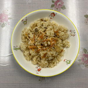 きのこごはんは桜エビとごまの風味が味のアクセントです