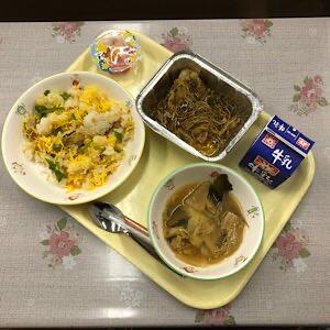メキシカンライス ピーマンの肉詰め レタスとベーコンのスープ 市川のなしゼリー 牛乳