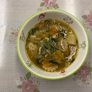 ワンタンスープは少し濃いめの味付けでご飯が進みます