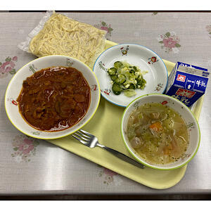 スパゲティナポリタン、イタリアンサラダ、ポトフ、牛乳