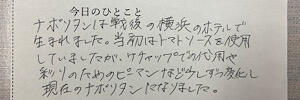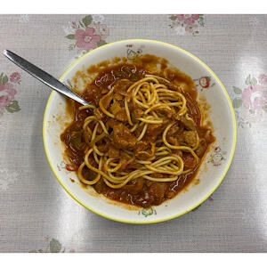 昔のソフト麺とは違い、ちゃんとスパゲティ。トマトの酸味が効いています。