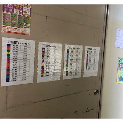 二学年ろうか 体育で走った成果を掲示しています