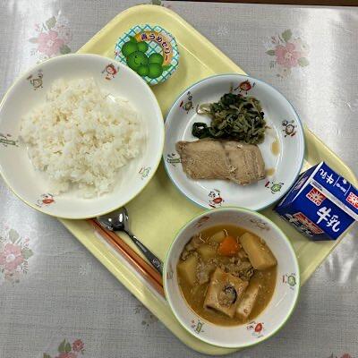 いなだの照り焼き 生揚げの肉みそ煮 磯和え ごはん 青梅ゼリー 牛乳