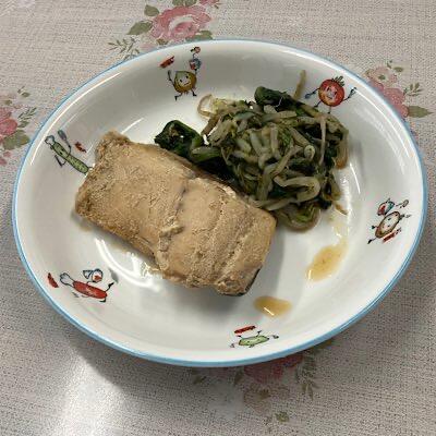 一口目から海苔の香が広がる、もやしとほうれん草の和え物