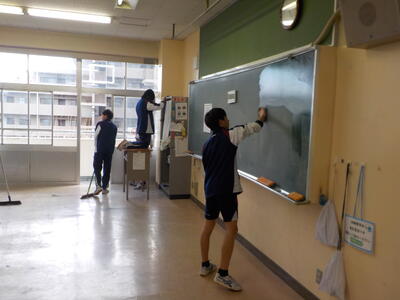感謝を込めて(大掃除) 投稿日時 : 12/22 第六中学校管理者 大掃除をしました。 まずは一番お世話になった教室をきれいに たくさん歩いた廊下や階段もきれいに 特別教室もきれいに(理科室・図書館・美術室) トイレもピカピカに みんな、膝をついて一心不乱に汚れを落としていました。 今年一年お世話になった「学び舎」をみんなできれいにできました。 良い年を迎えられそうです。