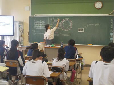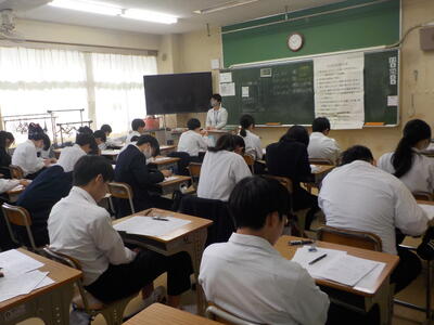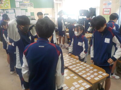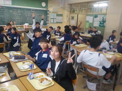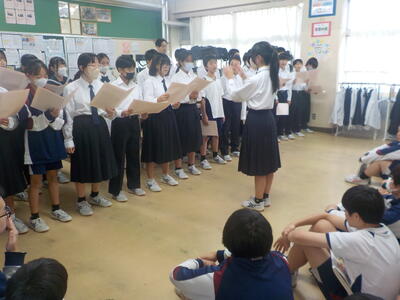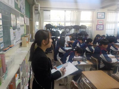 六中生が落ち着いて授業を受けている様子に感心していました。また、教室内の掲示物が明るくて、写真が多く使われていることにお褒めの言葉をいただきました。