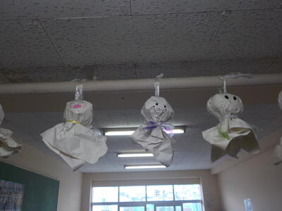 1年生の昇降口を入ると、上から何やら不思議なものがぶら下がっています。