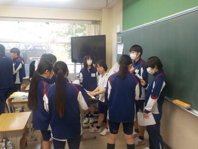 生徒数や部活動のこと、小学校との違いなどたくさんの質問を受けました。