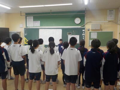 パートごとに歌ったり、歌詞を見ながら歌ったりとクラスで工夫しています。