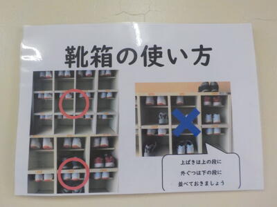 学年全員が、下校時に上履きを靴箱の上段にそろえて入れられたら1歩です。
