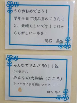 7月から、毎日、全員が意識しての達成です。さらに続けて100歩進んでほしいです。
