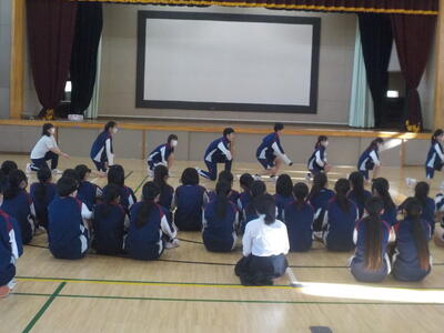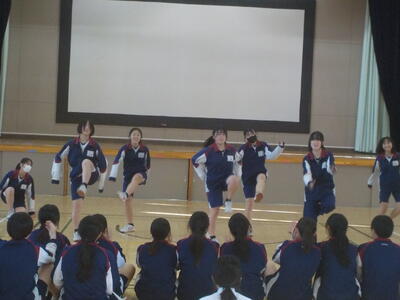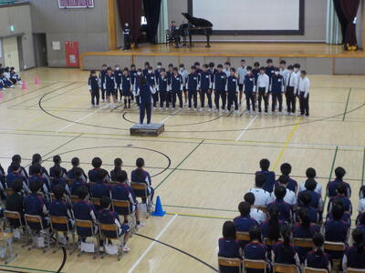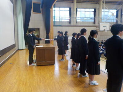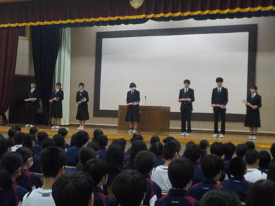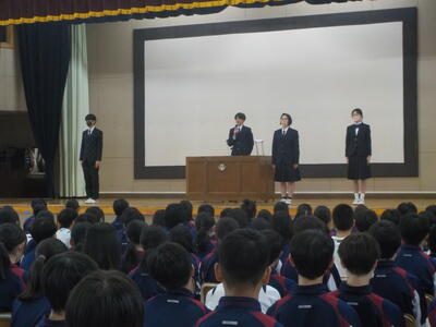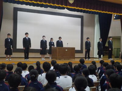 授業参観の後は、体育館で生徒会が中学校生活について説明しました。