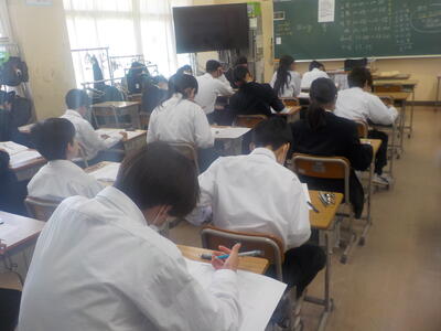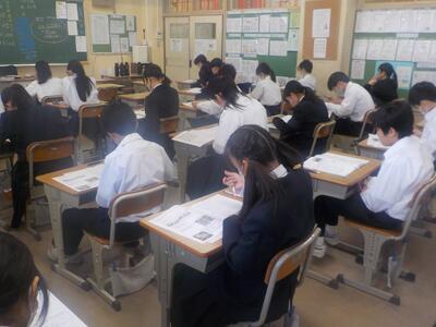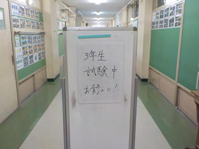 今日と明日は、1・2年生は定期テスト、3年生は到達度テストです。