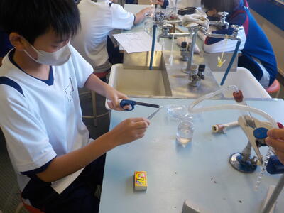 2年生の理科です。肺が膨らむ仕組みを学んでいました。