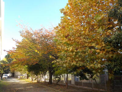 青空の下で紅葉がとてもきれいで、気持ちいいです。