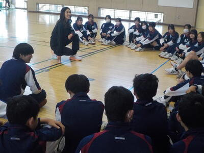先生は夢の実現のために、強い決意とたくさんの努力をしてきたことを話してくれました。中学生の心に届いたと思います。夢先生、ありがとうございました。お辞儀
