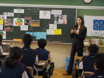夢の教室2日目です。今日のゲストティーチャーは元バレーボール選手のメイレレスゴンサルベッシュ美帆さんです。