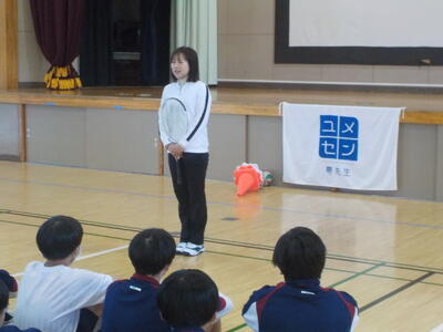 今日から3日間、元一流スポーツ選手が「夢先生」として、2年生に授業をしてくれます。花丸