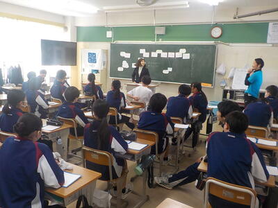 4時間目、5時間目に教育委員会から指導主事を招いて、授業研究を行いました。