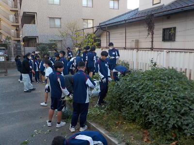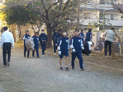 今朝は気温1度の寒い中、たくさんの生徒がボランティアに参加してくれました。